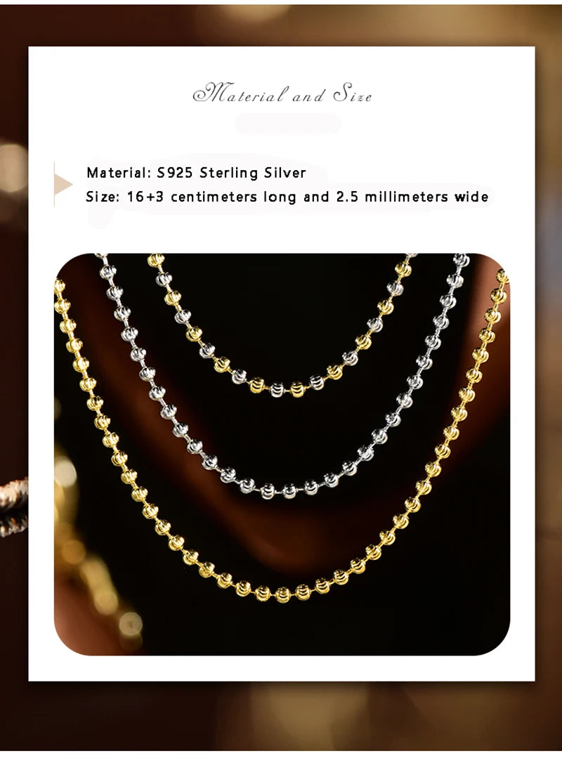 "925 Silver 2.5mm Diamond-Cut Bead Chain Bracelet – Made in Italy