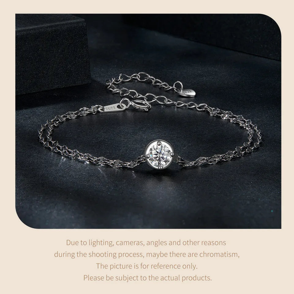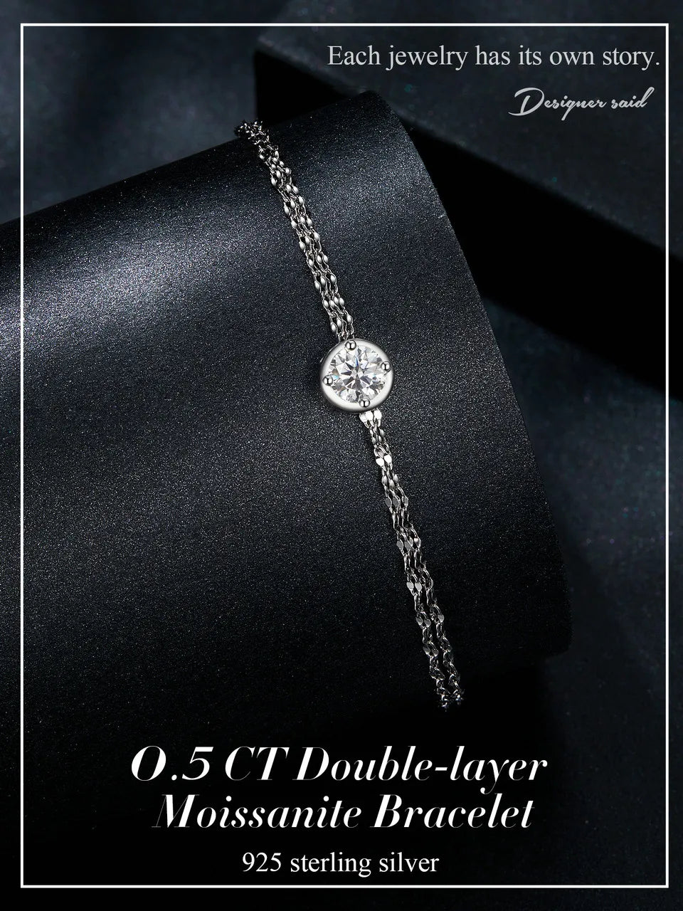 “Double-Layer Moissanite Sterling Silver Bracelet for Women”