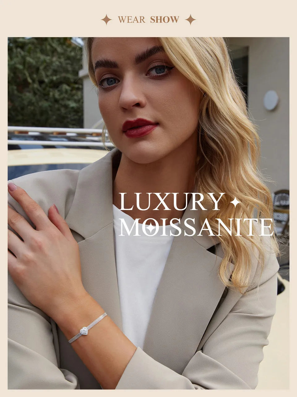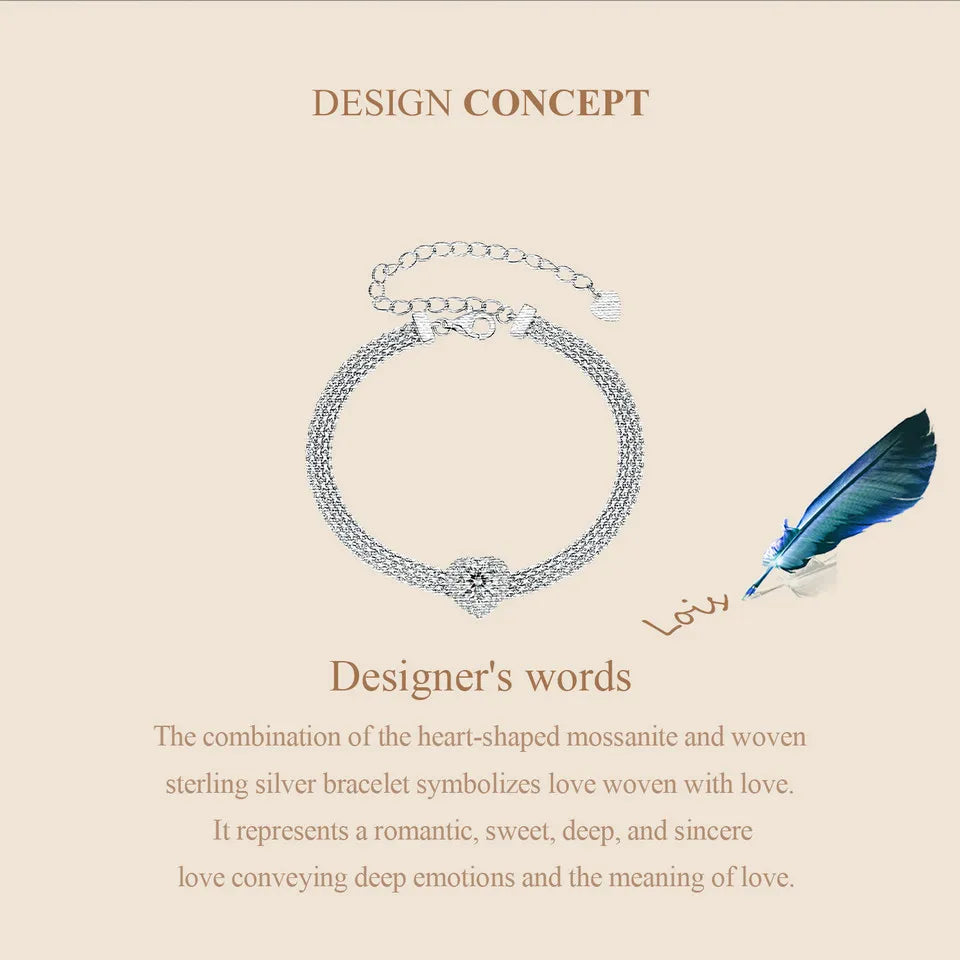 “Sterling Silver Mesh Chain Moissanite Heart Bracelet