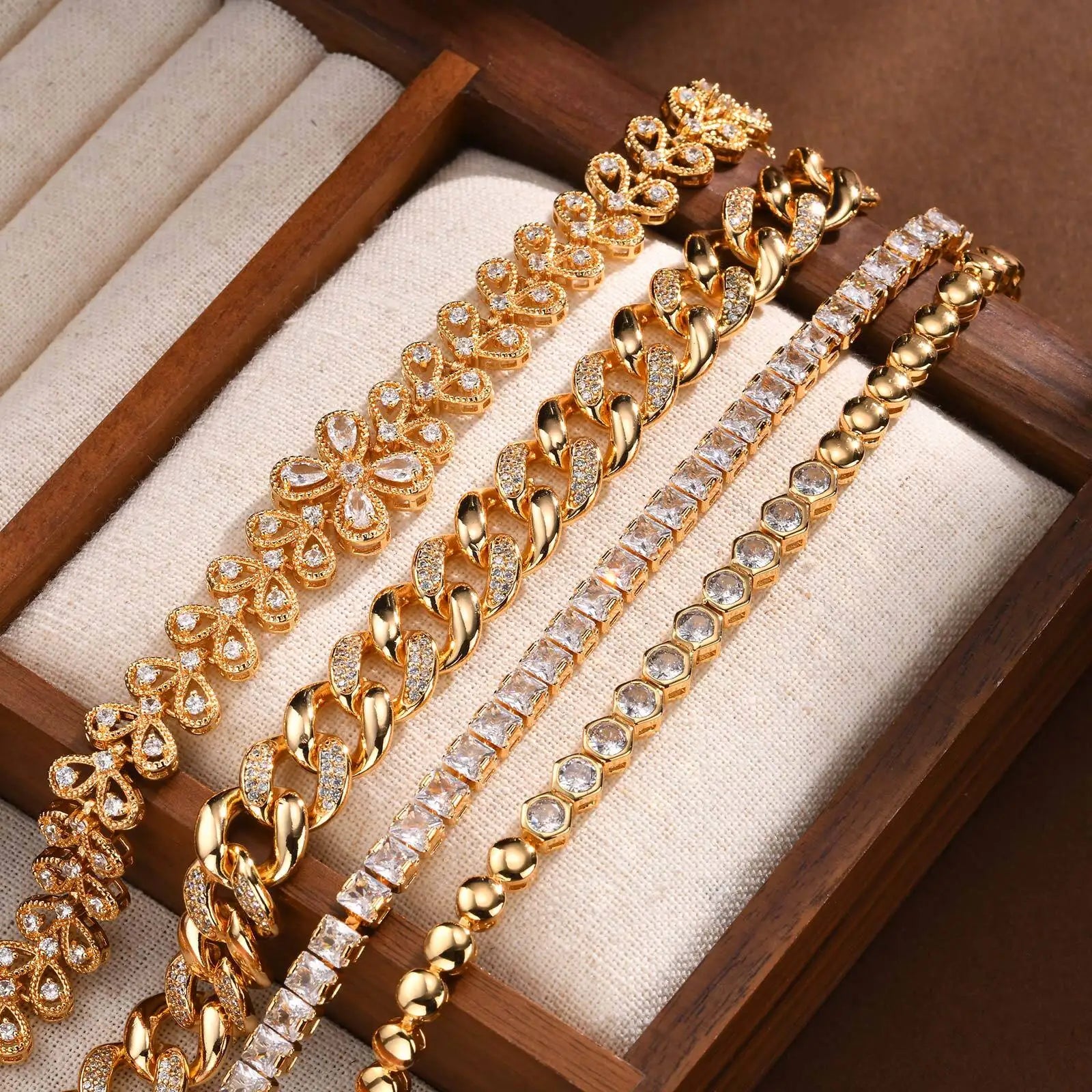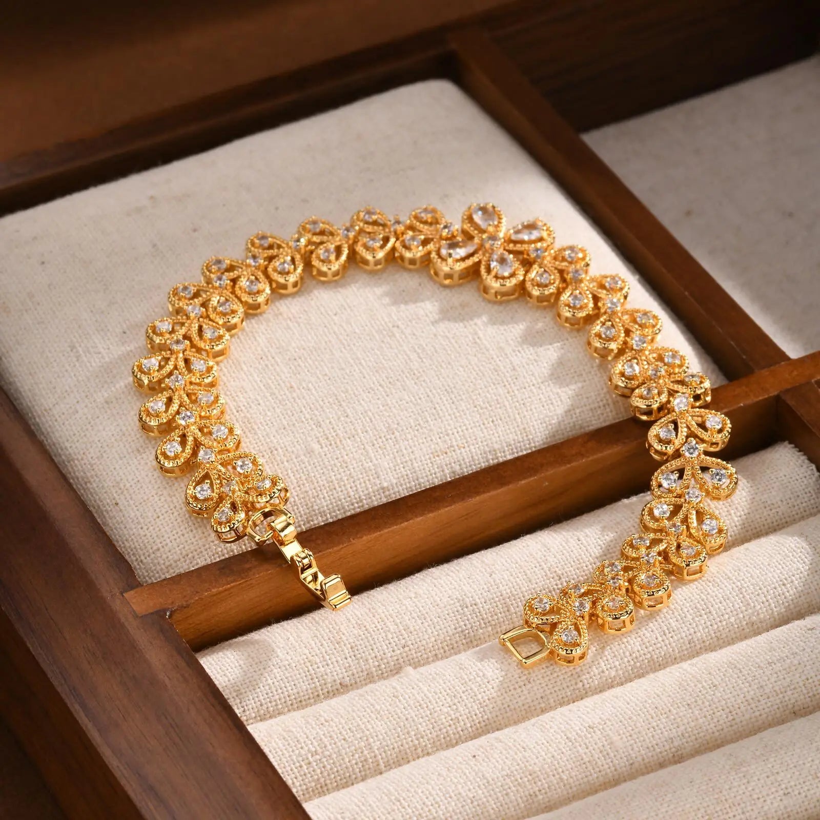 18K Gold-Plated CZ Four-Leaf Bracelet