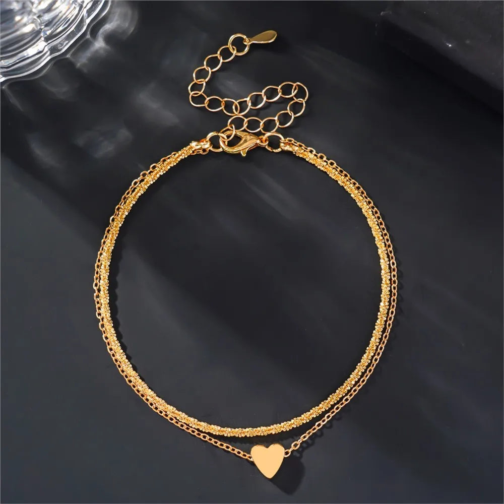 Double Layer Heart Pendant Anklet, Boho Style