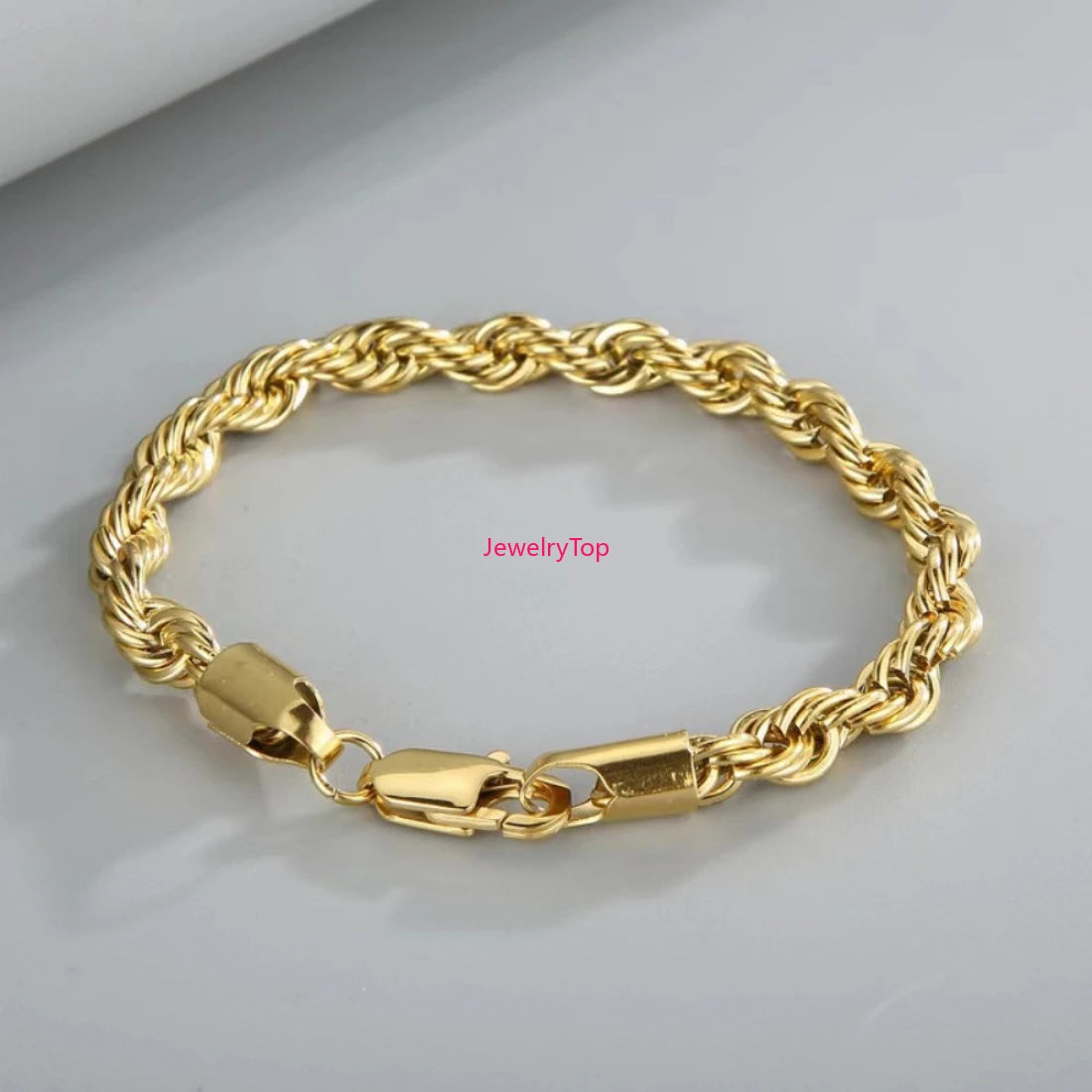 “Wholesale 18K Gold & 925 Silver 4MM Chain Bracelet 20cm