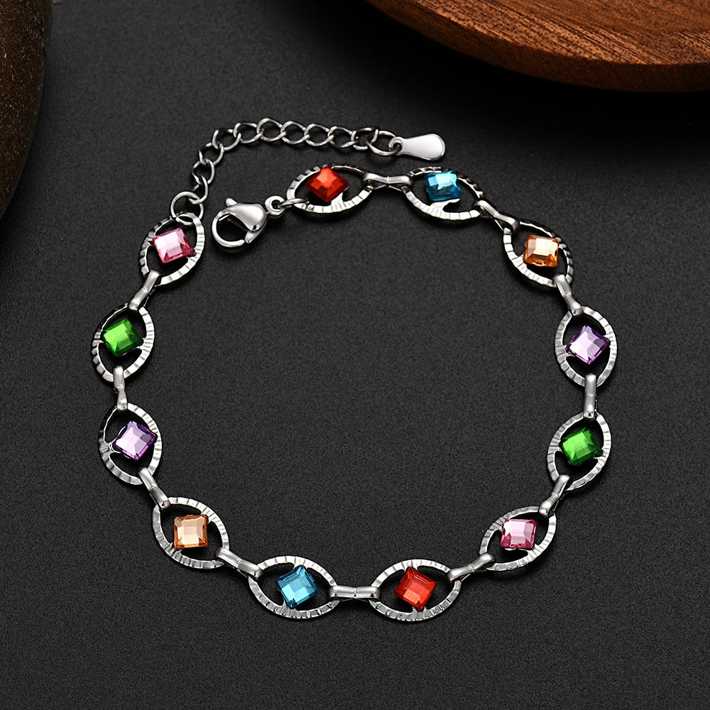 “18K Gold Sterling Silver Color Charm Bracelet 18+5CM”
