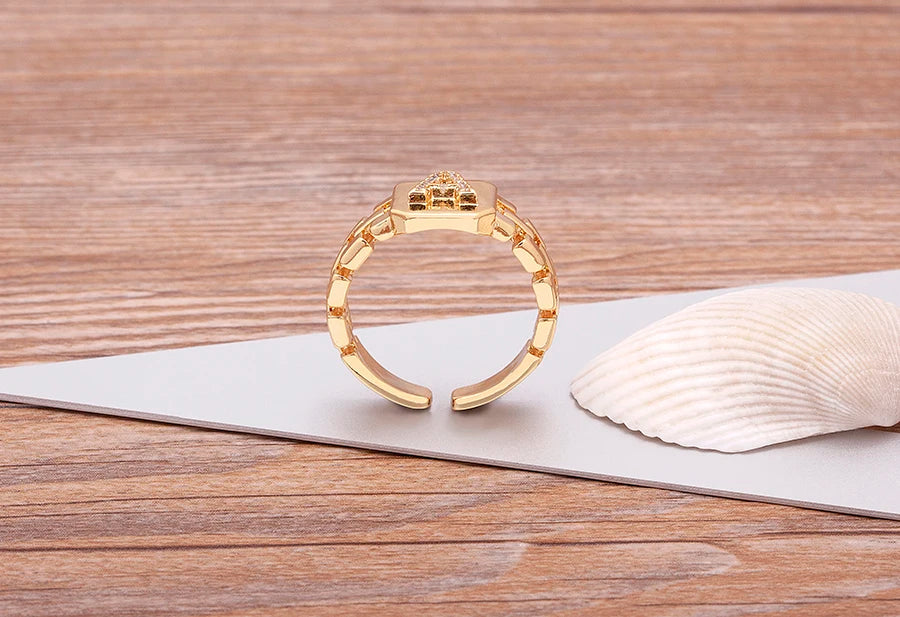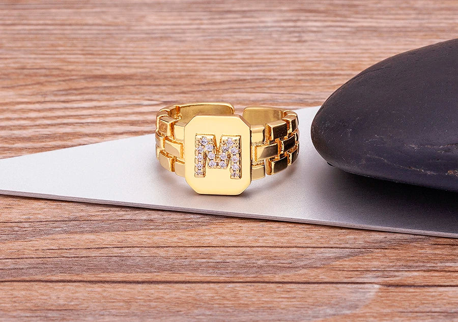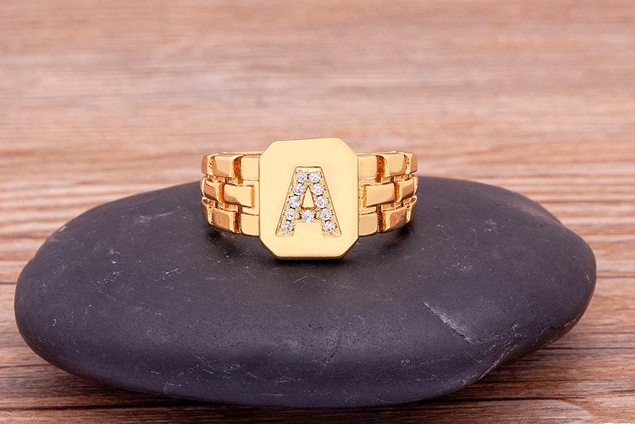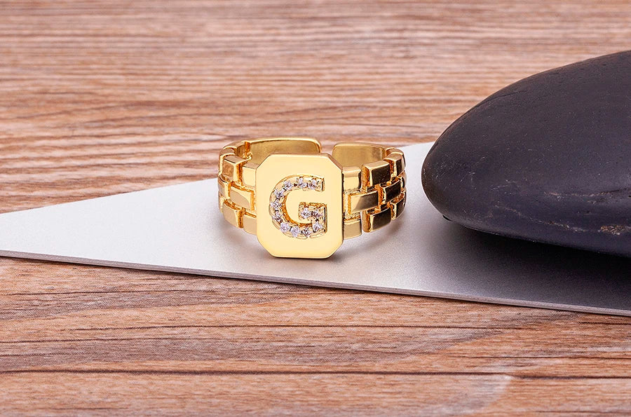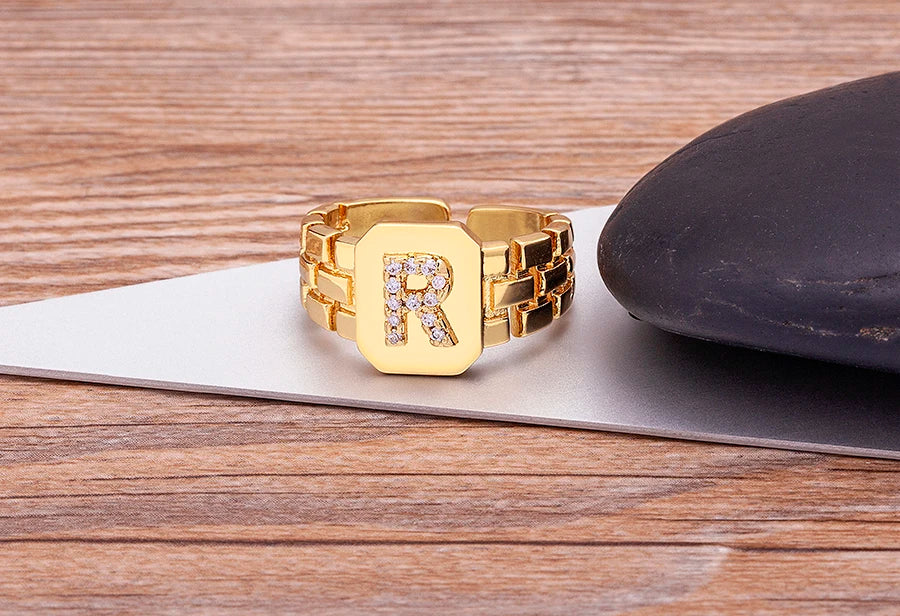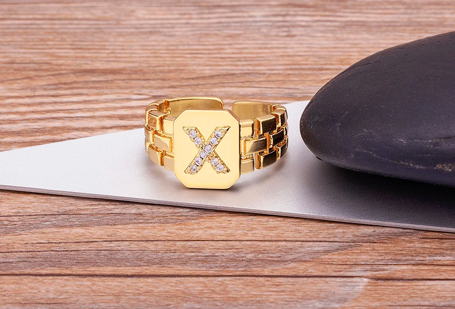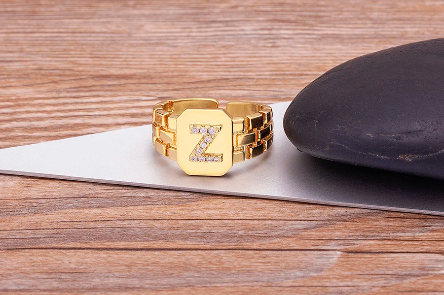"Gold Initial A–Z Zircon Ring – Adjustable Women’s Jewelry
