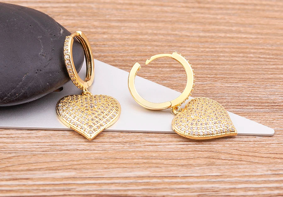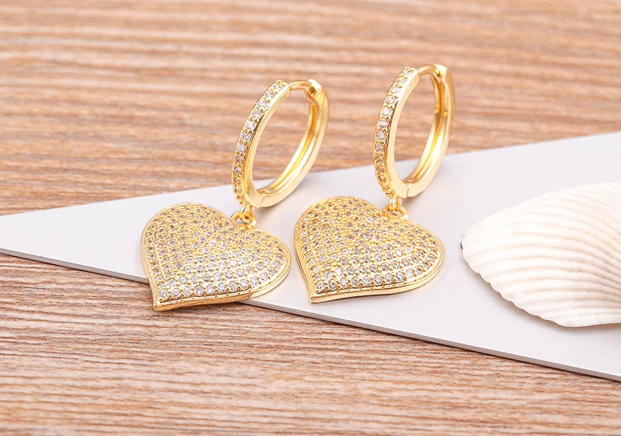 "Gold Heart Drop Earrings – Cubic Zirconia Jewelry Gift
