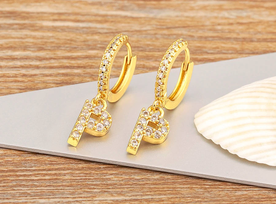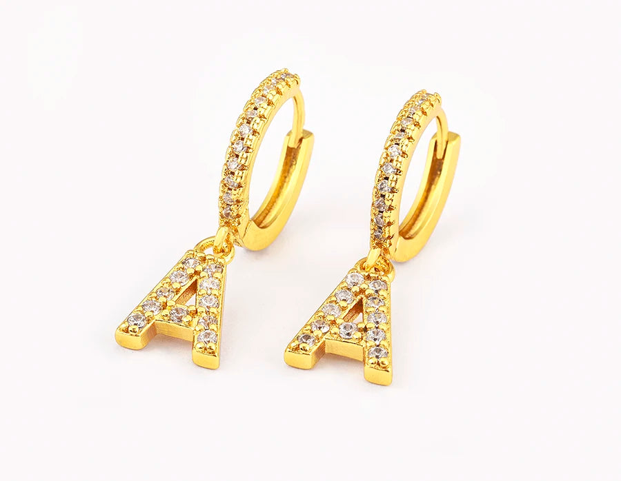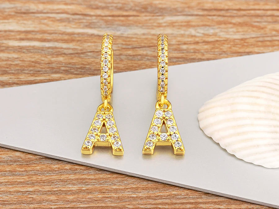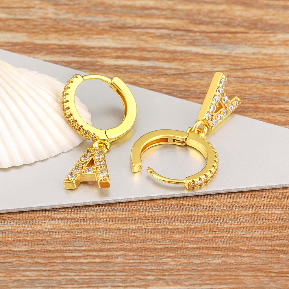 "Gold Zircon Alphabet Hoop Earrings A–Z – Fashion Jewelry Gift
