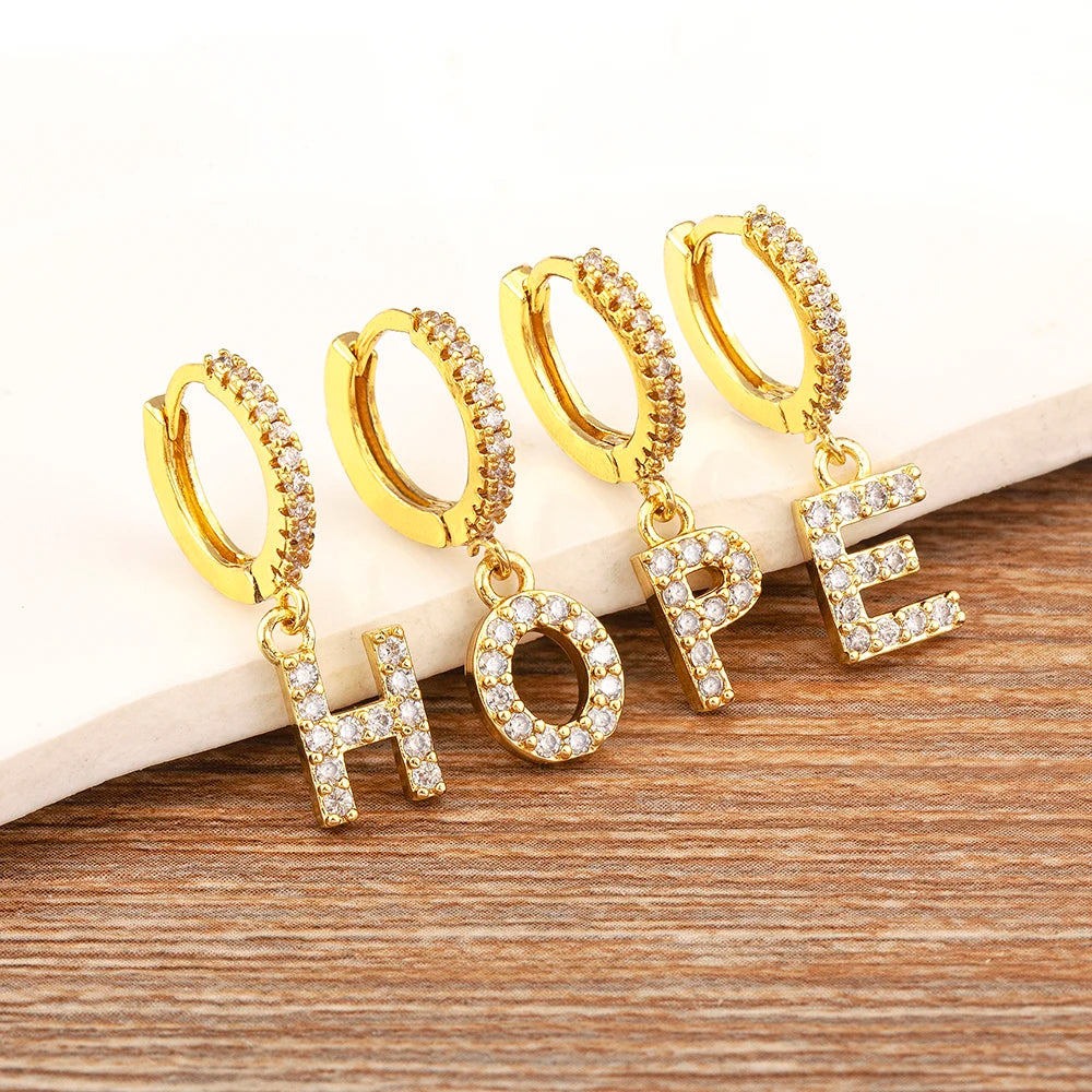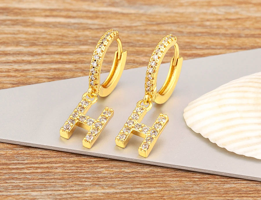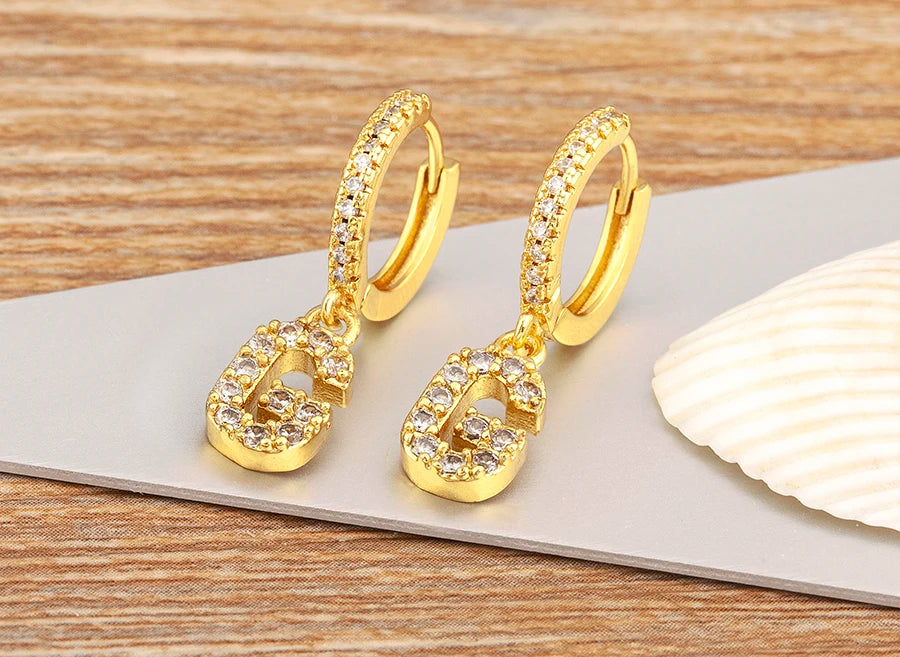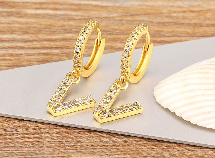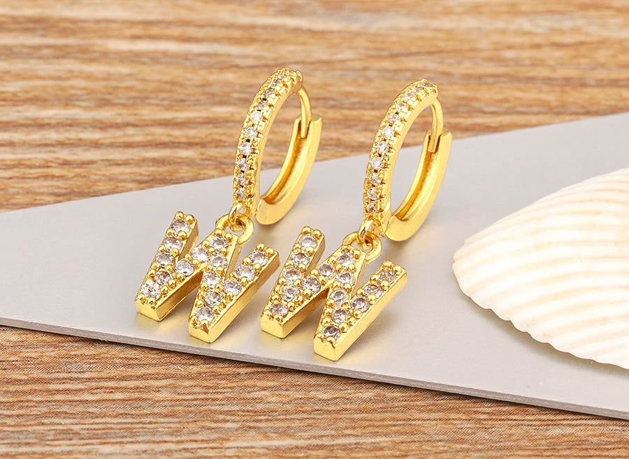 "Gold Zircon Alphabet Hoop Earrings A–Z – Fashion Jewelry Gift