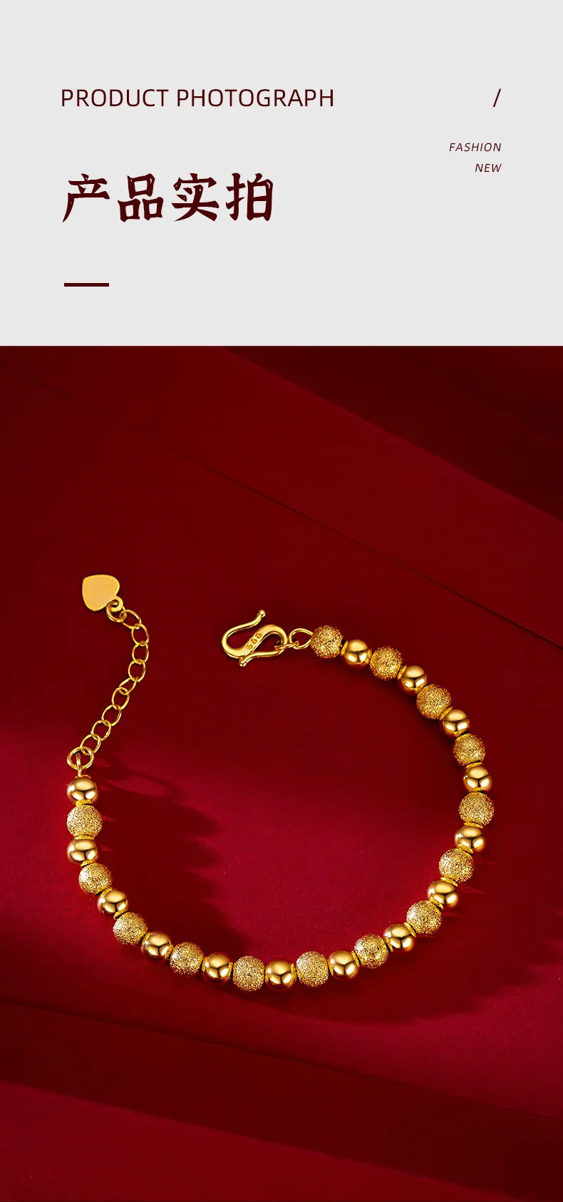 "Real 18K Gold 6mm Bead Chain Bracelet – Adjustable Jewelry Gift