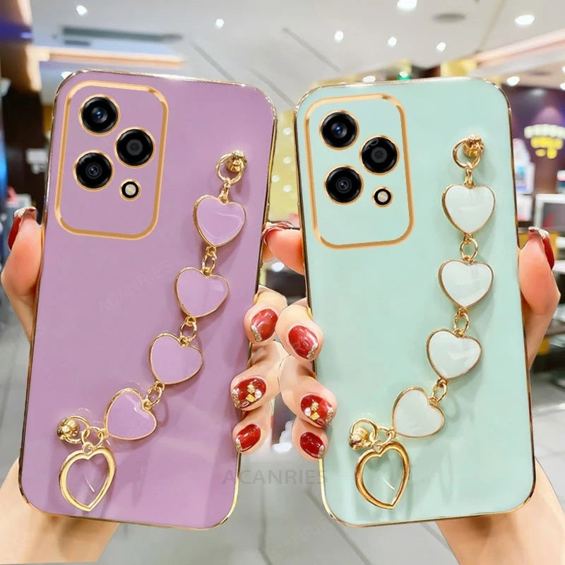 Condition: Luxury Plating Love Heart Bracelet Chain Square Back Cover Cases