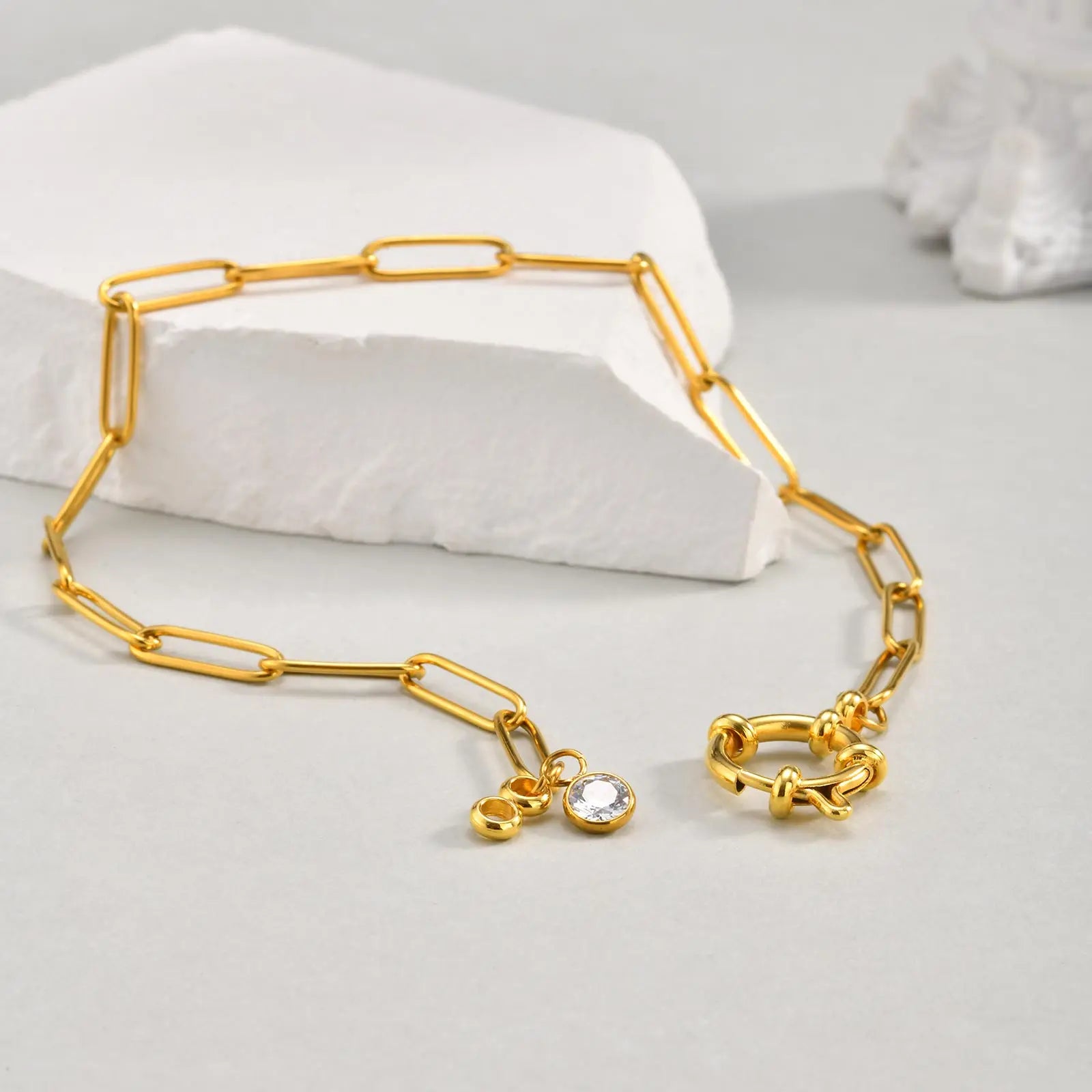 Stainless Steel Paperclip Zircon Anklet, Waterproof