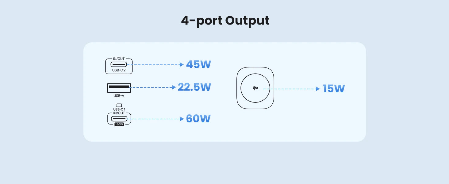 Output Interface: Double USB,USB-A,USB-Type C,Wireless Charger