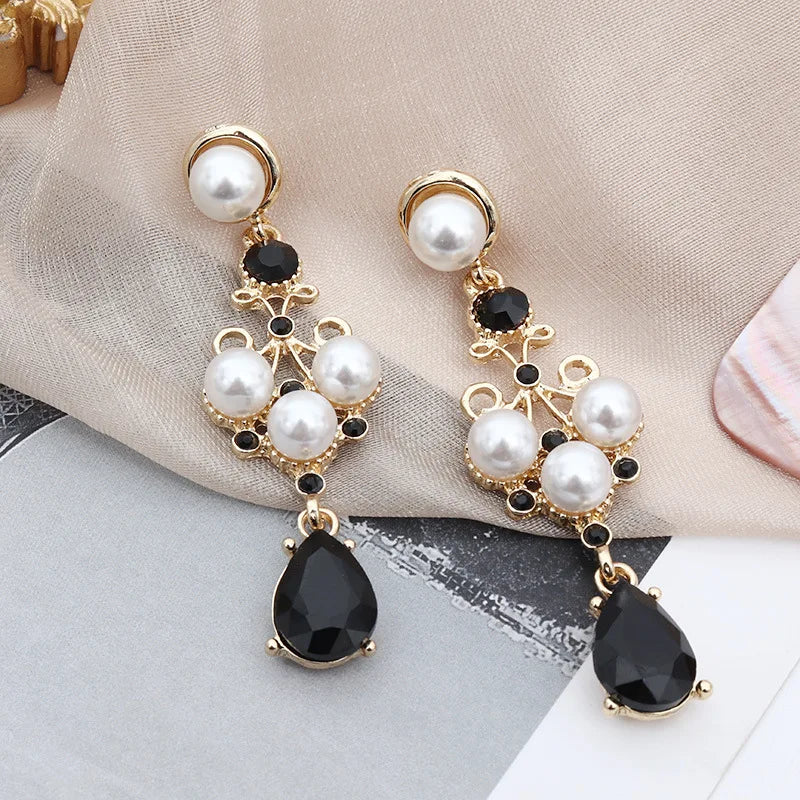 Vintage Court Style Baroque Pearl Dangle Earrings For Women Fashion Rhinestone Water Drop Pendant Earrings Party Jewelry Gifts