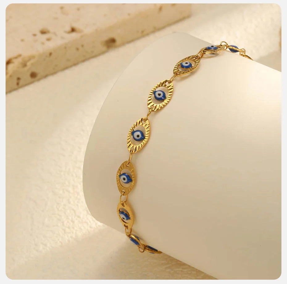 Vnox Vintage Evil Eye Adjustable Anklet, Metal Beads