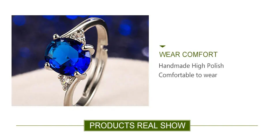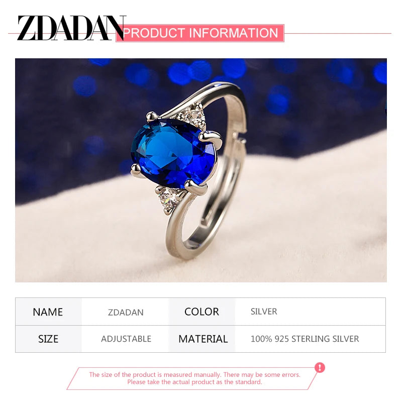 ZDADAN 925 Sterling Silver Round Crystal Ring
